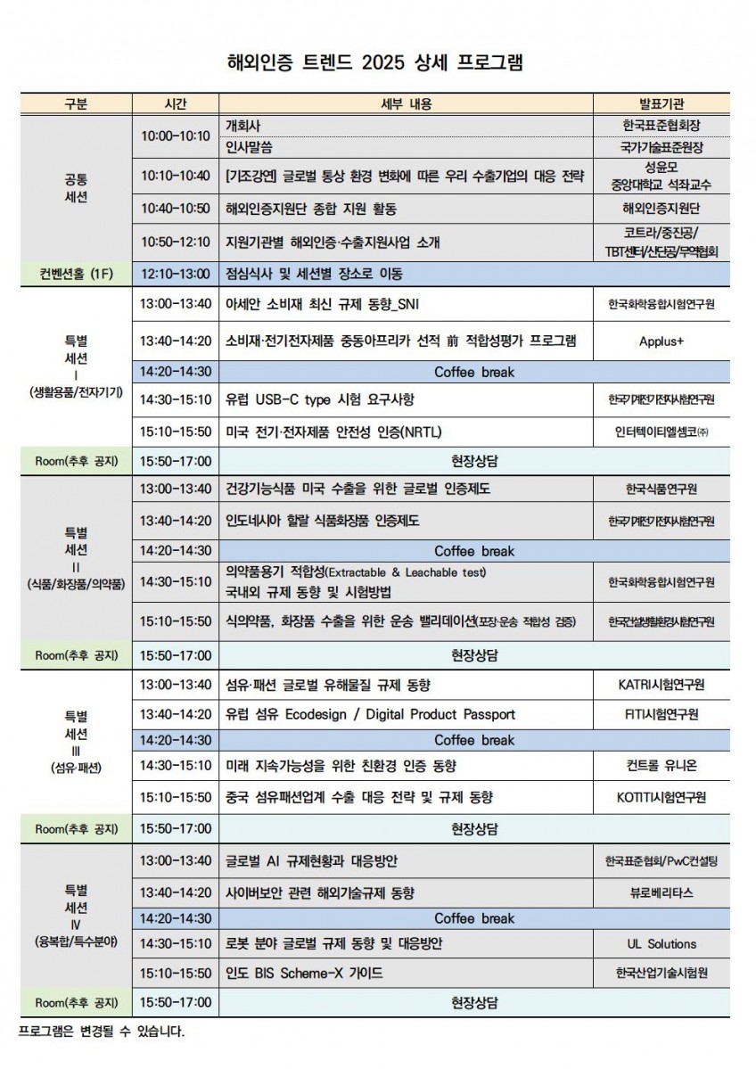 1. 행사명 : 수출기업을 위한 해외인증 트렌드 2025